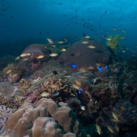 Many threatened species which include sea turtles like hawksbills, olive ridleys, and green turtles; humphead wrasses, giant groupers and giant clams are present in the Verde Island Passage.
